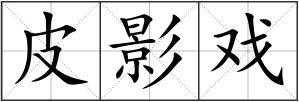 皮影戏 [pí yǐng xì]用灯光照射兽皮或纸板作成的人物剪影来表演故事的戏剧。也叫“影戏”、“影灯戏”、“土影戏”。表演时,由艺人在幕后一边操纵,一边演唱,并配以音乐。