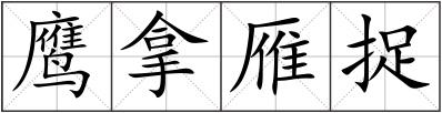 鹰拿雁捉 [yīng ná yàn zhuō]比喻缉捕时的快速凶猛。