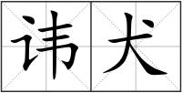 犬 : 犬quǎn狗:猎犬。警犬。犬马之劳。犬牙交错。犬子(谦辞,对人称自己的儿子)。桀犬吠尧(喻走狗?