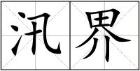 界 : 界jiè边境,一个区域的边限:界石(标志地界的石碑或石块)。界标。界址。界线(a.两个地区分界