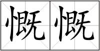 慨 : 慨kǎi情绪激昂,愤激:愤慨。慷慨。叹息,叹气:慨叹。感慨。豪爽,不吝啬:慨允。慨诺。慨然。