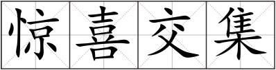 惊喜交集 [jīng xǐ jiāo jí]交集:一起袭来。两种事物同时出现或同时加在一个人身上,又惊又喜。