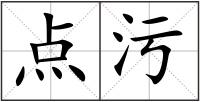 1.污损;弄脏。《三国志·吴志·韦曜传》:“惧有误谬,数数省读,不觉点污。” 北齐 颜之推 《颜氏家训·治家》:“或有狼籍几案,分散部帙,多为童幼婢妾之所点污,风雨虫鼠之所毁伤,实为累德。” 唐 杜甫 《绝句漫兴》之三:“衔泥点污琴书内,更接飞虫打着人。”