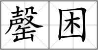 困 : 困(④⑤睏)kùn陷在艰难痛苦或无法摆脱的环境中:困厄(处境困苦危险)。困处(ch?)。困居。困