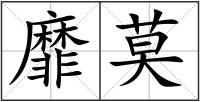 靡 : 靡mí浪费,奢侈:靡荡。靡费。侈靡。分散:靡散(消灭)。古同“糜”,糜烂。笔画数:19;部