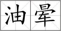 油晕 [yóu yūn]磨墨时,墨汁在墨锭周围形成的光亮的墨晕,谓之“油晕”。