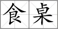 宋 邵伯温 《易学辨惑》:“ 伊川 同 朱公掞 访先君,先君留之饮酒,因以论道。 伊川 指向前食卓曰:‘此卓安在地上不还馆?’” 沙汀 《丁跛公》:“乡约十分气闷地离开了食桌,在一张圈椅上坐下。” 杨朔 《潼关之夜》:“他的脚步又轻又快,走向小饭馆里独一无二的食桌前,坐在我的对面。”