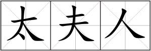 1.汉制﹐列侯之母称太夫子。 2.后世官吏之母﹐不论存殁﹐亦称太夫人。唐韩愈有《祭左司李员外太夫人文》。宋政和间﹐曾以"太"字为对生者的尊称﹐令凡追封者皆去"太"字。见宋徐度《却扫编》卷上。