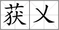 获 : 获(獲⑤穫)huò打猎得到的禽兽:猎获。得到,取得:获得。获奖。获悉。如获至宝。古代对奴婢?
