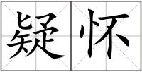 疑 : 疑yí不信,猜度(du?):疑惑。疑问。疑心。疑团。疑虑。疑窦。疑点。疑端。猜疑。怀疑。半信半疑