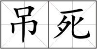 清 李渔 《奈何天·调美》:“不好了,不好了,夫人, 周家姨娘 弔死了。” 清 黄六鸿 《福惠全书·刑名·验各种死伤法》:“人于家中弔死,移尸外掛者,亦有两痕,原痕紫有血痕,移痕白无血痕。”