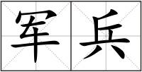 军 : 军(軍)jūn武装部队:军威。军服。行(x妌g )军。军功。军犬。军备。军纪。军衔。军阀。军令状 WwW.WeNTIYi.cOm
