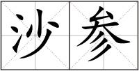 1.亦作"沙蔘"。 2.多年生草本植物,叶长椭圆形,四片轮生,花冠钟形,萼片狭长,紫色。根粗大,味苦,可入药。