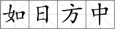 如日方中 [rú rì fāng zhōng]好像太阳正在天顶。比喻事物正发展到十分兴盛的阶段。