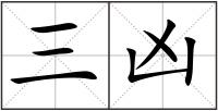 三凶 [sān xiōng]三个凶顽的人。指 帝鸿氏 (黄帝 )之子 驩兜 ,少皞氏 之子 共工 ,颛顼氏 之子 鲧 。见《左传·文公十八年》。