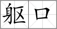 躯口 [qū kǒu]金 元 时以被俘的 汉 人为奴,称“躯口”。亦简称“躯”。躯,通“驱 ”。