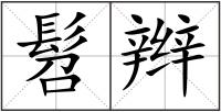 辫 : 辫(辮)biàn把头发分股编成的带状物:发(f?)辫。辫子(a.发辫;b.像辫子的东西;c.喻把
