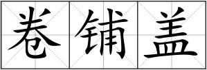 曹禺 《北京人》第一幕:“你们收拾不收拾?不收拾我就卷铺盖滚蛋。” 钱锺书 《围城》一:“ 阿刘 哑声告诉,姓 孙 的那几个人打牌,声音太闹,给 法国 管事查到了,大吵其架,自己的饭碗也砸破了,等会就得卷铺盖下船。”