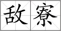 敌 : 敌(敵)dí有利害冲突不能相容的:敌人。敌方。敌寇。指敌人:敌后。敌情。敌酋。敌特。轻敌。?