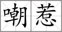 嘲 : 嘲cháo讥笑,拿人取笑:嘲笑。嘲弄。嘲骂。嘲诮。嘲谑。冷嘲热讽。嘲zhāo〔嘲哳(zh?)〕同?