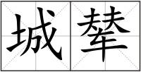 城 : 城chéng围绕都市的高墙:城墙。城池。城圈。城郭(“城”指内城墙,“郭”指外城墙)。城楼。城堞