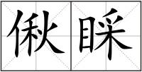 偢 : 偢chǒu顾视;理睬。偢qiào方言,傻。笔画数:11;部首:亻;笔顺编号:32312344334