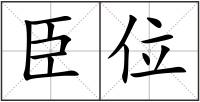 臣 : 臣chén君主时代的官吏,有时亦包括百姓:臣僚。臣子。臣服。君臣。官吏对君主的自称:“王必无人
