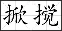 唐 陆龟蒙 《奉和袭美苦雨见寄》:“惯曾掀搅大笔多,为我才情也如此。” 宋 苏舜钦 《奉酬公素学士见招之作》诗:“近罹罪辱舌虽在,每避嫌谤口已胶。更连掀搅岂不畏,欲取笔砚俱焚烧。” 宋 苏轼 《与王元直书》:“某为权倖所疾久矣,然捃摭无获,徒劳掀搅,取笑四方耳。”