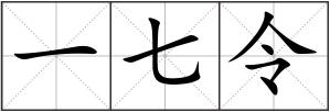 1.词牌名。唐白居易分司东都时,群贤会兴化亭送别。酒酣,各赋诗,自一字至七字为句,除第一句外,各二句,共五十五字。后谱为词,即以《一七令》为词牌名。另一体,其第一句亦作二句,共五十六字。参阅宋计有功《唐诗纪事》卷三九,《词谱》卷十一。