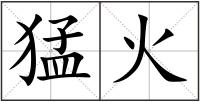 《书·胤征》:“天吏逸德,烈于猛火。” 孔 传:“猛火烈矣,又烈於火。” 晋 葛洪 《抱朴子·金丹》:“此丹置猛火上,须臾成黄金。” 清 朱彝尊 《杭州水利悉浚治之凡二十四韵》:“猛火一燎原,悲燄百室迷。” 夏衍 《秋瑾传》第二幕:“一定要打一个响雷,放一把猛火,才能吓醒他。”WWw.weNTIyI.Com