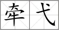 牵 : 牵(牽)qiān拉,引领向前:牵引。牵曳。牵头。牵线。牵萝补屋(把萝藤拉上屋顶来补草房,形容生