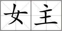 1.主妇。 2.王后或太后。 3.多指临朝执政的女统治者。
