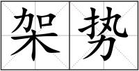 《太平天囯歌谣传说集·徐泰吉找死》:“ 徐泰吉 带了团练驻在 黎里 北面的 清风桥 一带,摆好架势,想打太平军一个措手不及。” 水运宪 《祸起萧墙》:“双方都想出了很多驳斥对方的新理由,挖出了另外一些刁难对方的新问题,架势一拉开比头天更加激烈。”