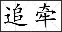 牵 : 牵(牽)qiān拉,引领向前:牵引。牵曳。牵头。牵线。牵萝补屋(把萝藤拉上屋顶来补草房,形容生