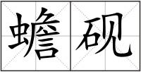蟾 : 蟾chán〔蟾蜍〕两栖动物,皮上有许多疙瘩,内有毒腺,形状像蛙。吃昆虫、蜗牛等,对农业有益。俗?