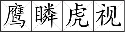 鹰瞵虎视 [yīng lín hǔ shì]像鹰和虎一样凶狠贪婪地注视着。形容心怀不善,伺机攫取。