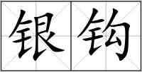 1.银质或银色的钩子。《晋书·索靖传》:“盖草书之为状也,婉若银鉤,飘若惊鸞。” 南朝 梁 刘孝威 《钓竿篇》:“金辖茱萸网,银钩翡翠竿。” 唐 骆宾王 《上吏部侍郎帝京篇》:“侠客珠弹垂杨道,倡妇银鉤采桑路。”《宋史·乐志十五》:“翠帘人静月光浮,但半捲银钩。”