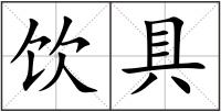宋 陆游 《今年立冬后菊方盛开小饮》诗:“胡床移就菊花畦,饮具酸寒手自擕。” 清 李渔 《闲情偶寄·颐养·行乐》:“饮具无论丰嗇,贵在可继。”