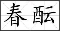 春 : 春chūn一年的第一季:春季(农历正月至三月)。春节。春色。春晖(春天的阳光,喻父母的恩情)。?