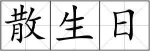 《金瓶梅》第三九回回目:“寄法名 官哥 穿道服,散生日 敬济 拜寃家。”《何典》第一回:“一日,因 活鬼 的散生日, 雌鬼 便端正几样小小菜,沽了一壶淡水白酒,要替老公庆阴寿。” 周立波 《山乡巨变》上二一:“其实,也不算财喜,昨天是贱内的散生,女屋里送来一只熏鸡,一块腊肉,还有两瓶镜面酒。”