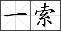 1.一根绳索。 2.一次搜索。 3.一串。参见"一索珠"。 4.原出《易.说卦》。后以"一索"谓初生男孩。 5.索性,干脆。