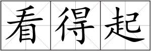 鲁迅 《且介亭杂文·难行和不信》:“ 中国 的儿童给大家特别看得起,那当然也很好,然而出来的题目就因此常常是难题。” 老舍 《四世同堂》二:“ 祁老太爷 不大看得起这个院子,所以拿那院子的人并不当作街坊看待。” 洪深 《少奶奶的扇子》第四幕:“大众纵然当面不肯给你太下不去,谁还看得起你,谁还把你当人?”