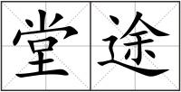 途 : 途tú道路:路途。途径。旅途。长途。坦途。日暮途穷。前途。道路笔画数:10;部首:辶;笔顺