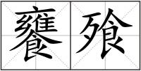 饔 : 饔yōng熟食。早饭:饔飧不继(“飧”,晚饭,指吃了上顿没有下顿)。笔画数:22;部首:飠;