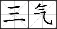 1.指太初﹑太始和太素之气。 2.指天﹑地﹑人之气。 3.道教语。指太阴﹑太阳﹑中和之气。 4.道教语。指上中下三丹田之气。 5.中医指六气中的第三气,即暑气,属于相火。