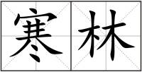 晋 陆机 《叹逝赋》:“步寒林以悽惻,翫春翘而有思。” 唐 王维 《过李揖宅》诗:“客来深巷中,犬吠寒林下。” 宋 范仲淹 《和提刑赵学士探梅》诗之二:“静映寒林晚未芳,人人欲看 寿阳 粧。” 瞿秋白 《饿乡纪程》六:“车站前一片大旷场,四围寒林萧瑟,晓霜犹凝,飕颼的西北风吹着落叶扫地作响,告诉我们已经到了北国寒乡了。”wWW.wentIYi.cOM