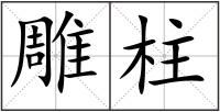雕柱 [diāo zhù]饰有浮雕、彩绘的柱子;装饰华美的柱子。