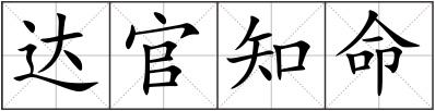 达官知命 [dá guān zhī mìng]达观:旧指一切听其自然,也指看得开。知命:旧指知天命,想念人的命运是由天决定的。指对不如意的事情看得开,任凭命运安排,无。