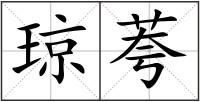 琼 : 琼(瓊)qióng美玉:琼玉。琼莹。喻美好的:琼瑶。琼室。琼姿。琼筵。琼章(美好的诗文)。琼葩