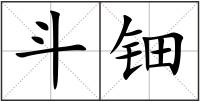 斗 : 斗dǒu中国市制容量单位(十升为一斗,十斗为一石):斗酒只鸡(经常用作招待客人的简单酒食,家常